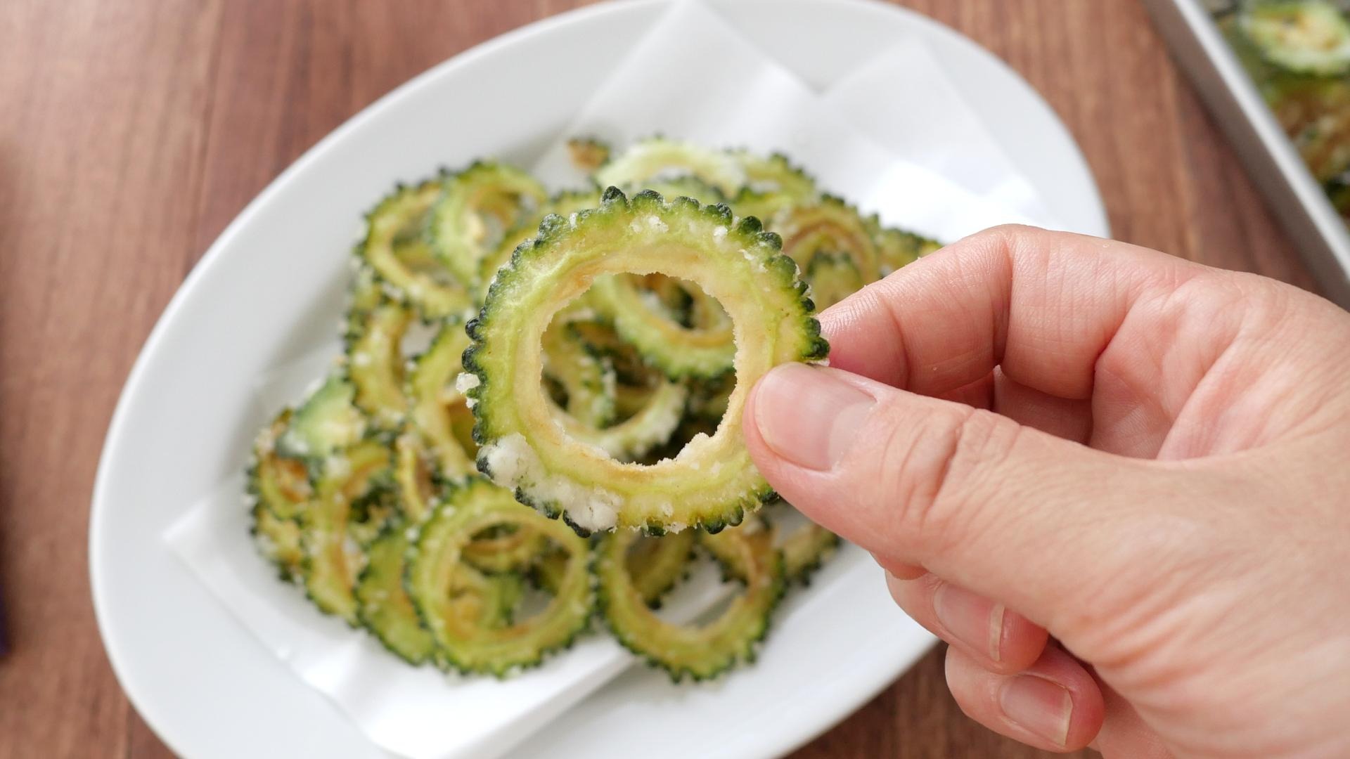 ゴーヤと夏野菜のチップスを美しく仕上げる。