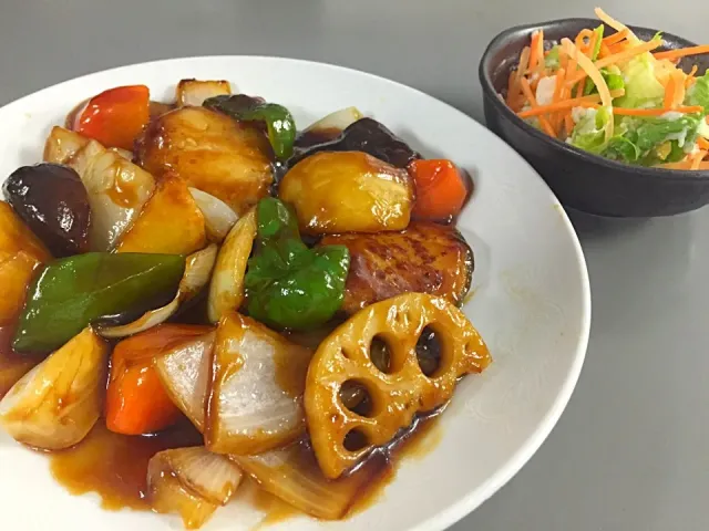 かりっと真鱈を和風カレー野菜ソテーと共に。