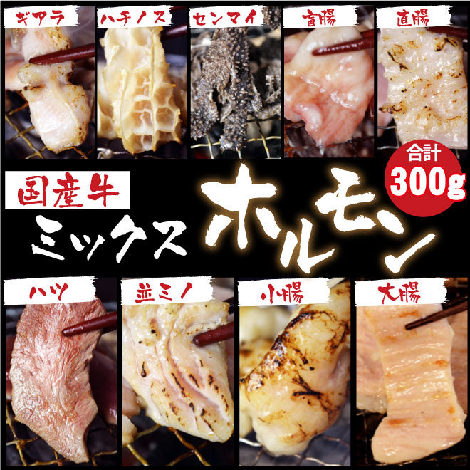 国産牛ミックスホルモン300g 焼肉バーベキューホルモンうどんもつ鍋。