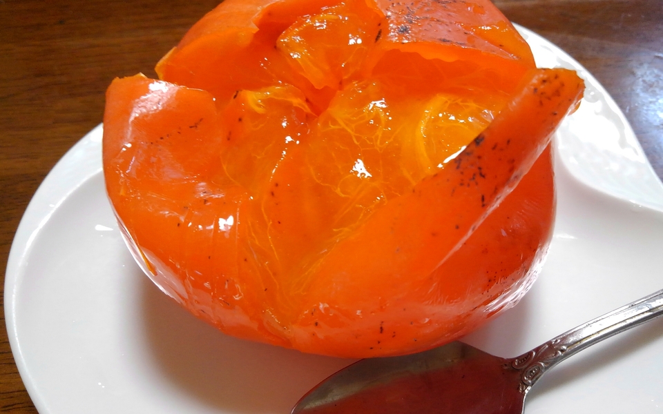 やわらかい柿の食べ方: 坂城の風の音を聴きながら。