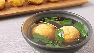 冷凍たこ焼きで簡単に明石焼き風スープ。