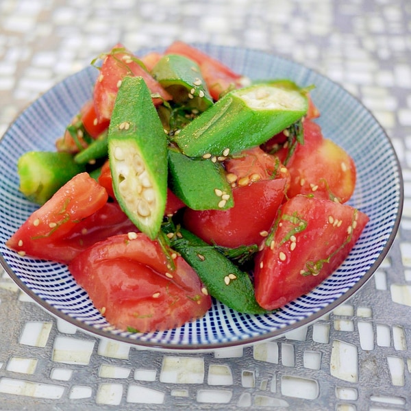 野菜をモリモリ食べよう! トマトとオクラのさっぱりサラダ。