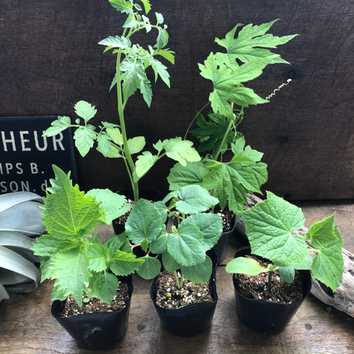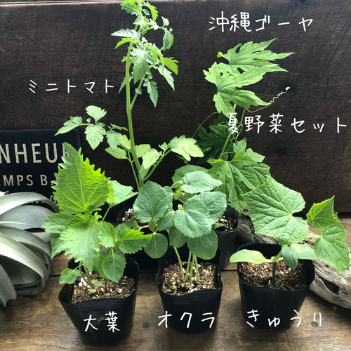 夏野菜の5種セット♡ゴーヤ・きゅうり・ミニトマト・大葉・オクラ♡野菜の苗♡ アートフラワー パリジェンヌ 通販19470625Creema クリーマ。