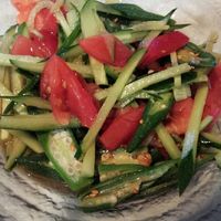 *トマトときゅうりと香味野菜の塩昆布サラダ*。