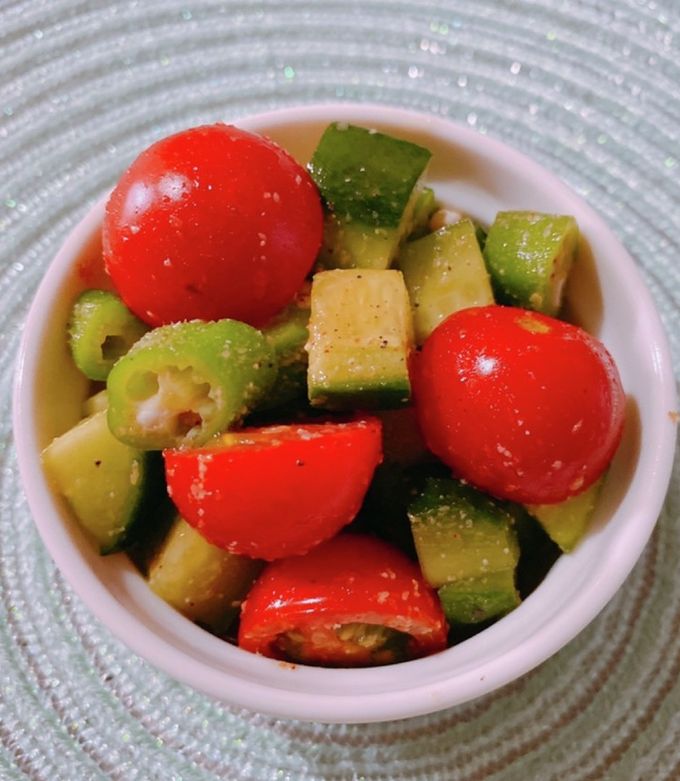トマトときゅうりとオクラの塩昆布サラダ簡単 時短レシピサイトNadia。