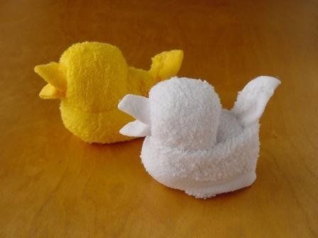 遊びで作れるおしぼりアートの折り方は?うさぎ アヒル バラ 桃BELCY。