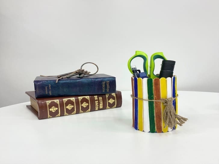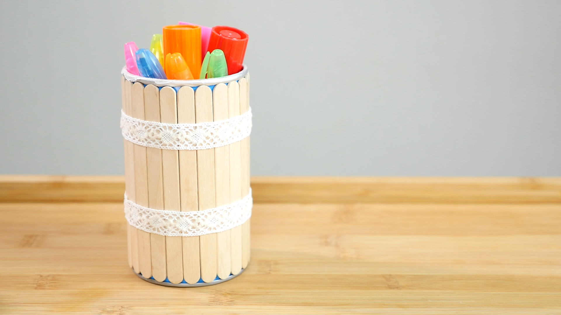 手作りアイスキャンディー棒で作るオシャレなペン立て。