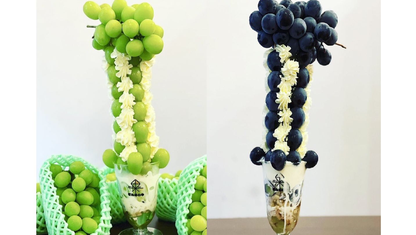 極上のスイーツ愛知県名古屋市築地口駅近くにあるお店「ぜんめいや」の「マスカットツリー」と「巨峰ツリー」✨。