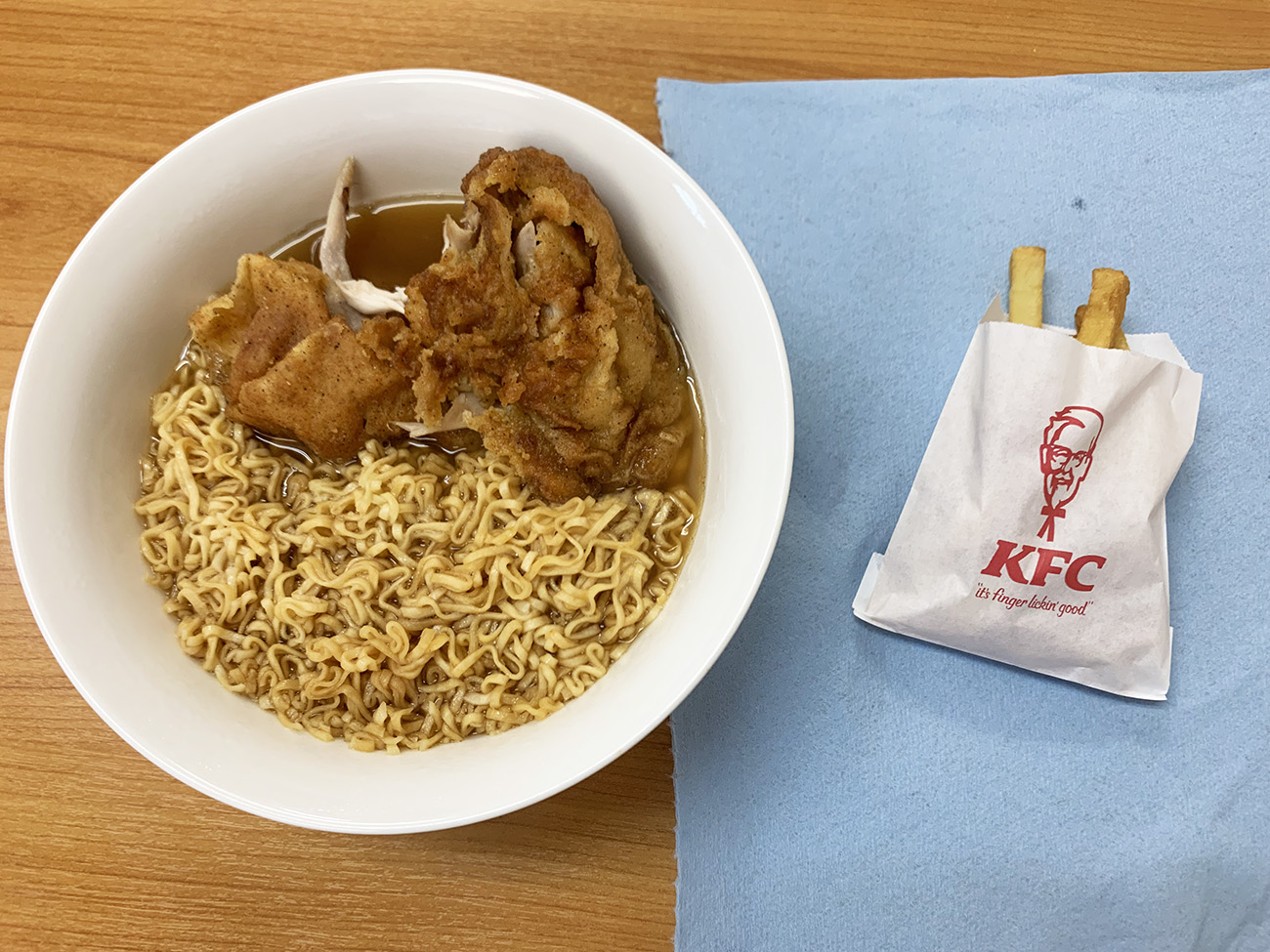 ケンタッキーで作る「オリジナルチキンラーメン」が100倍ウマイ! 骨の出汁で濃縮するスープとスパイシーさが超最強!!ロケットニュース24。