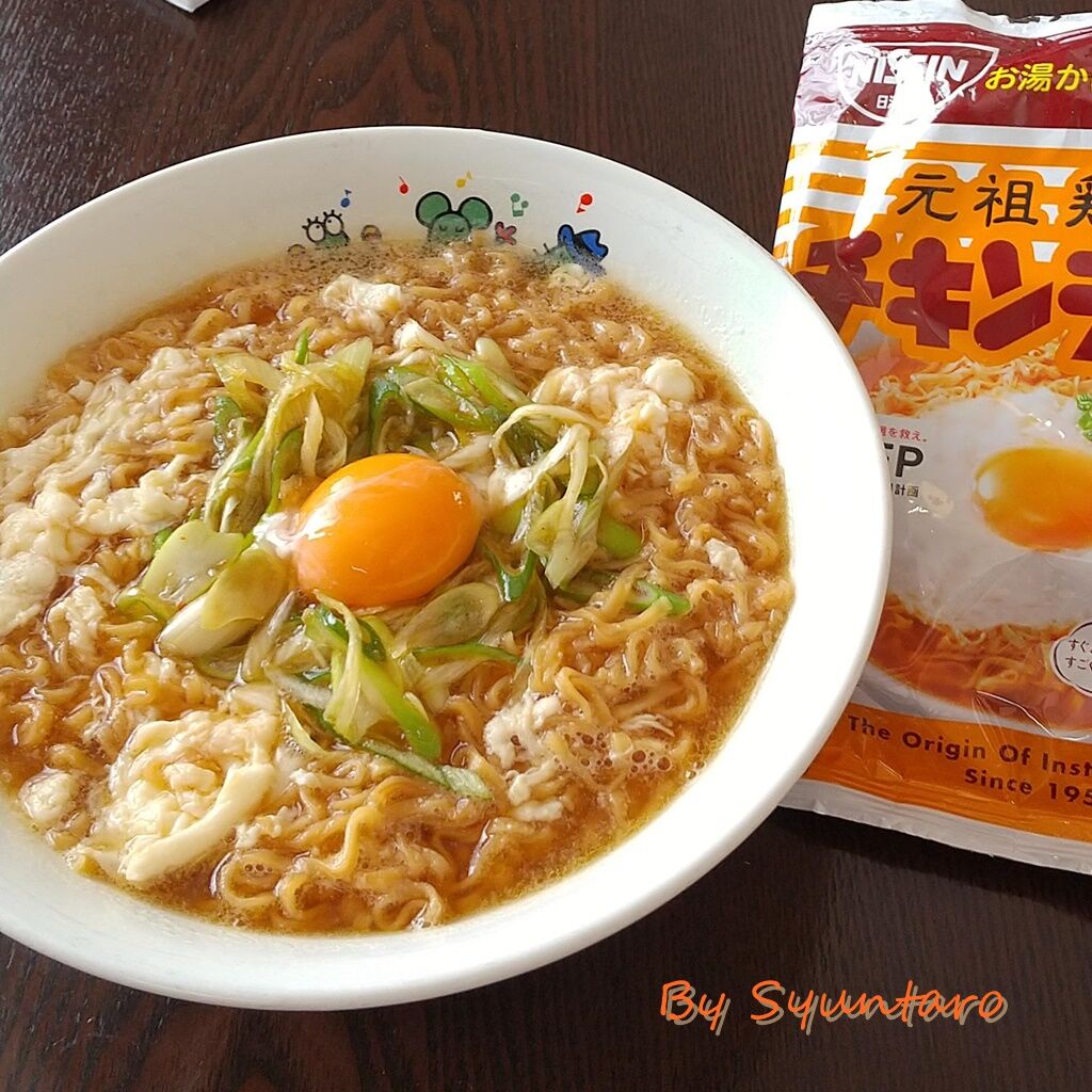 ピリ辛キムチチーズのチキンラーメンアレンジ。