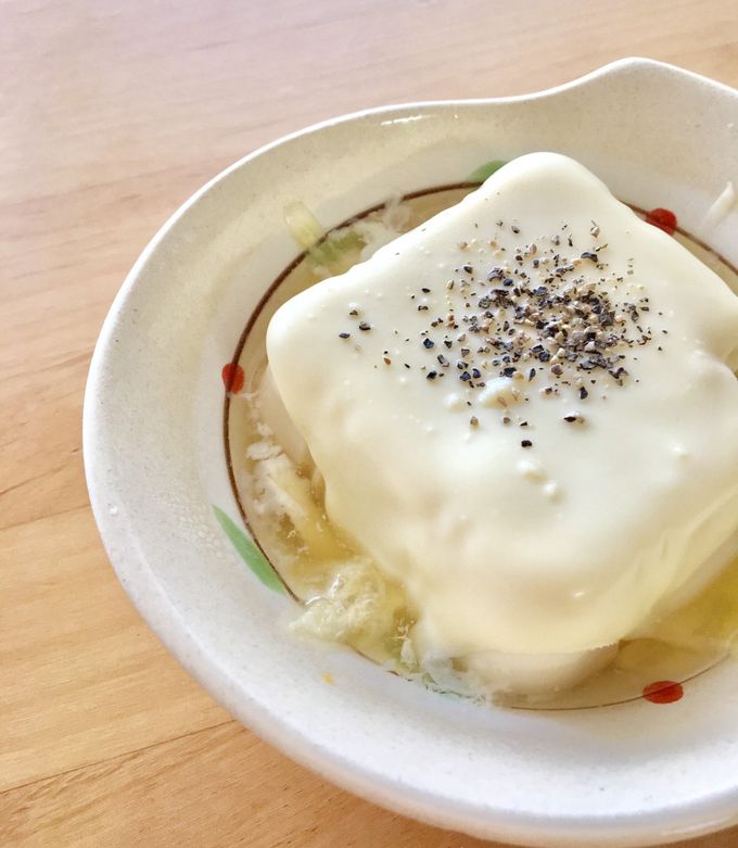 とろっとろ!レンジで簡単 チーズと卵の湯豆腐 レシピ・作り方Tasty。