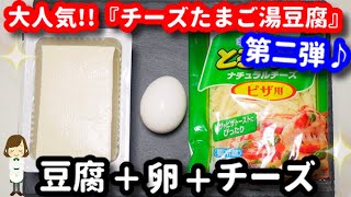 大好評!! 人気のレンチン3分『チーズたまご湯豆腐』の第二弾!!Cheese egg tofu with microwave in 3min -YouTube。