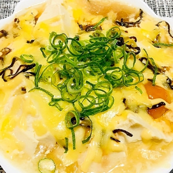 人気のレンチン3分湯豆腐シリーズ!『チーズたまご湯豆腐〜中華風〜』の作り方 - てぬキッチン。