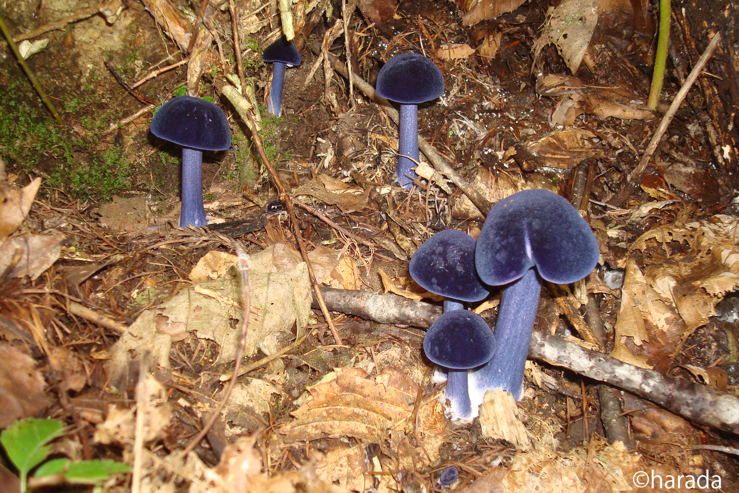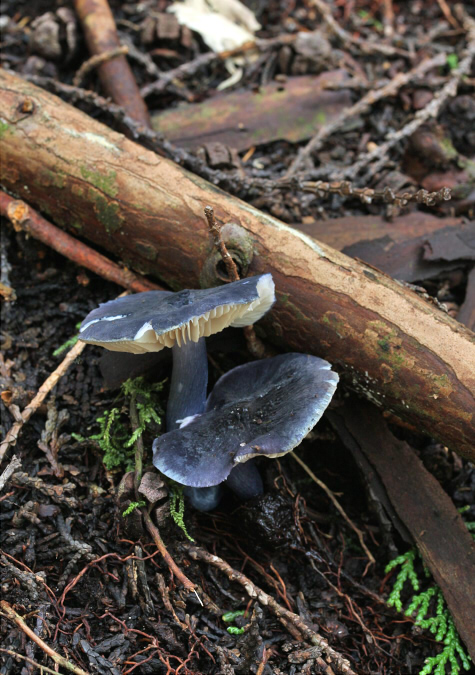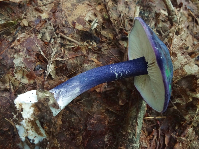 □Entoloma cyanonigrumコンイロイッポンシメジ。