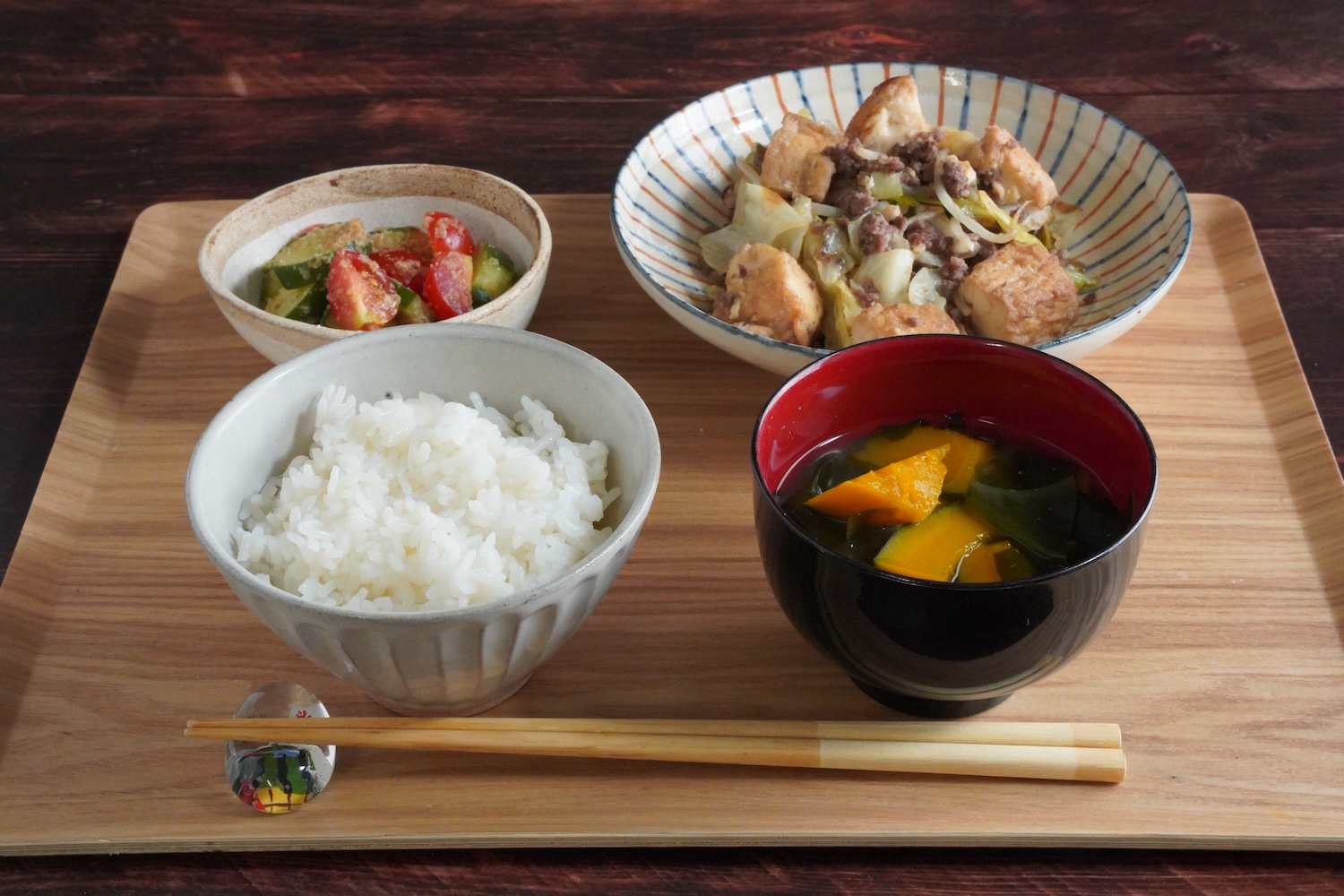 普段の和食が1番!キャベツと厚揚げの肉味噌炒め献立59_3日目我が家のおうちごはん。