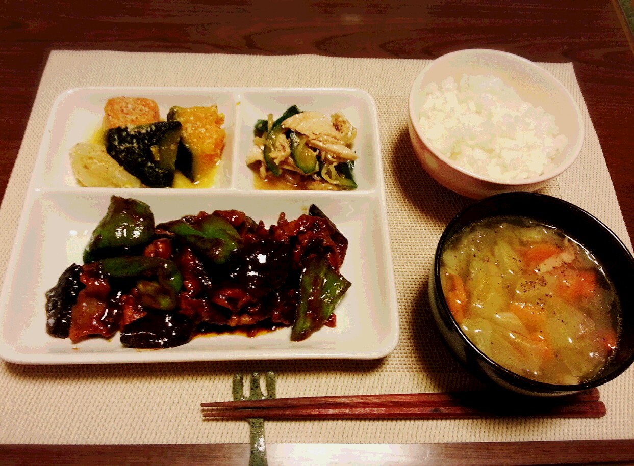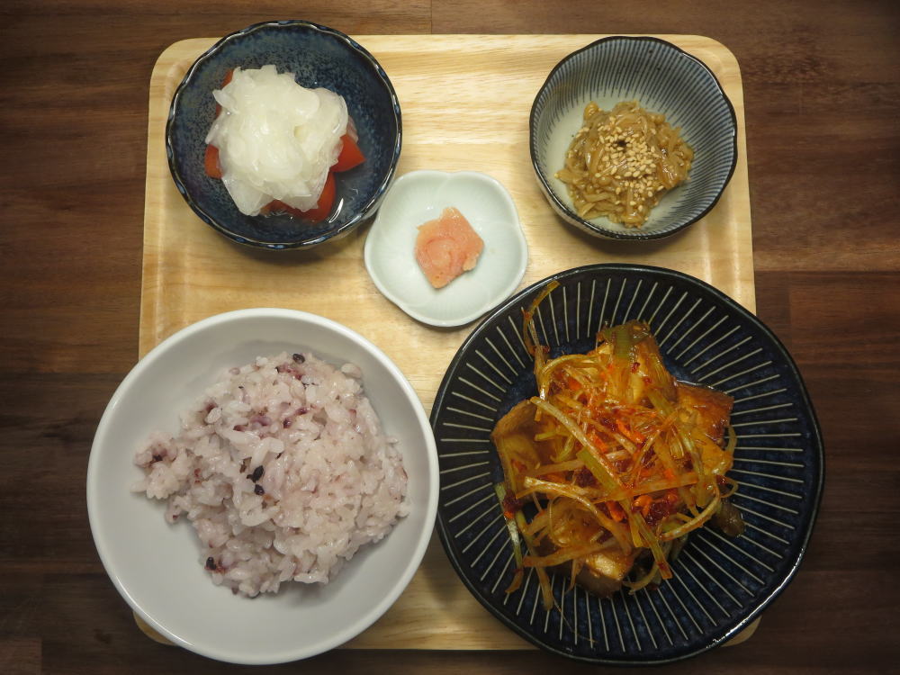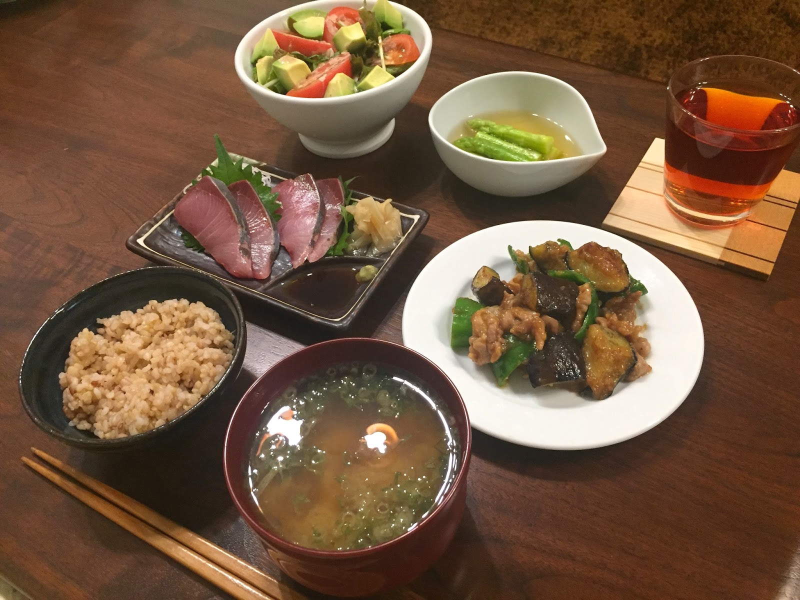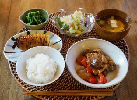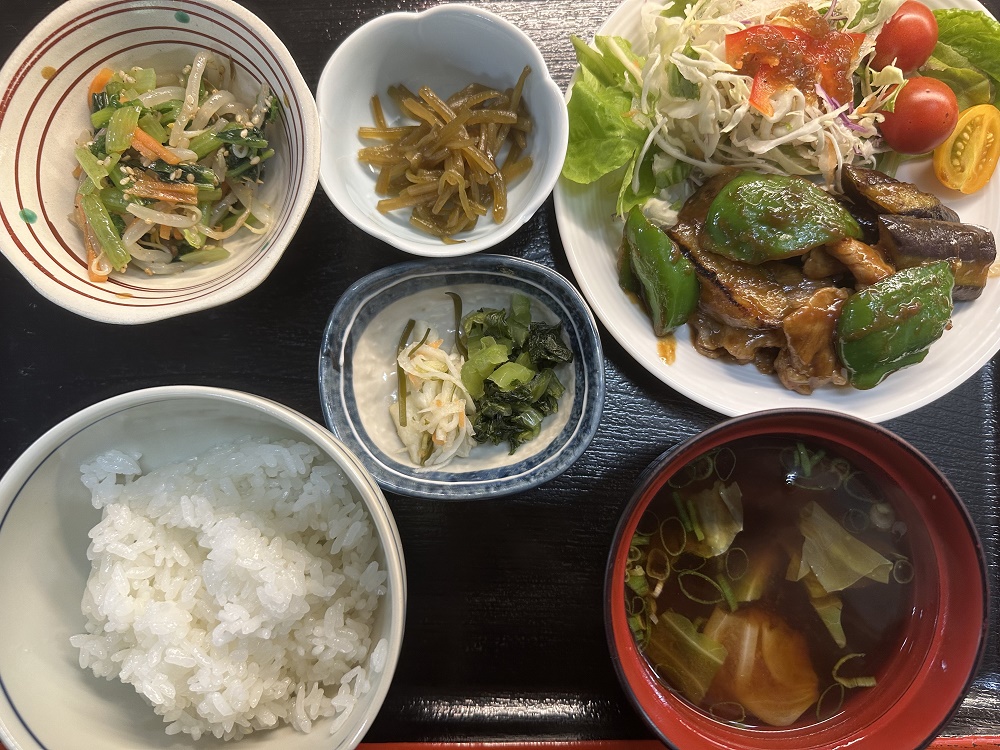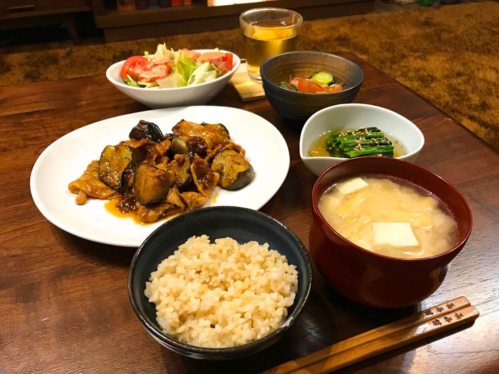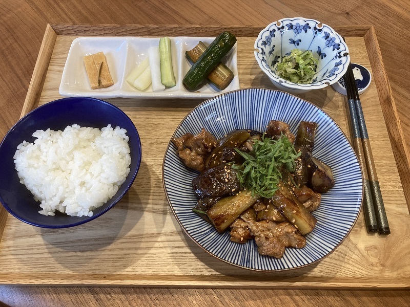 きのうの献立:茄子と豚肉の味噌炒めあさこ食堂。