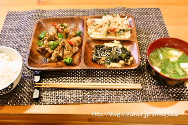 献立 豚肉と茄子の味噌炒めで夜ごはん : のんすけのおいしいくらし。