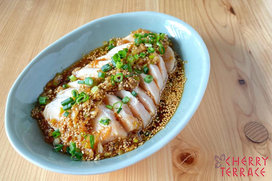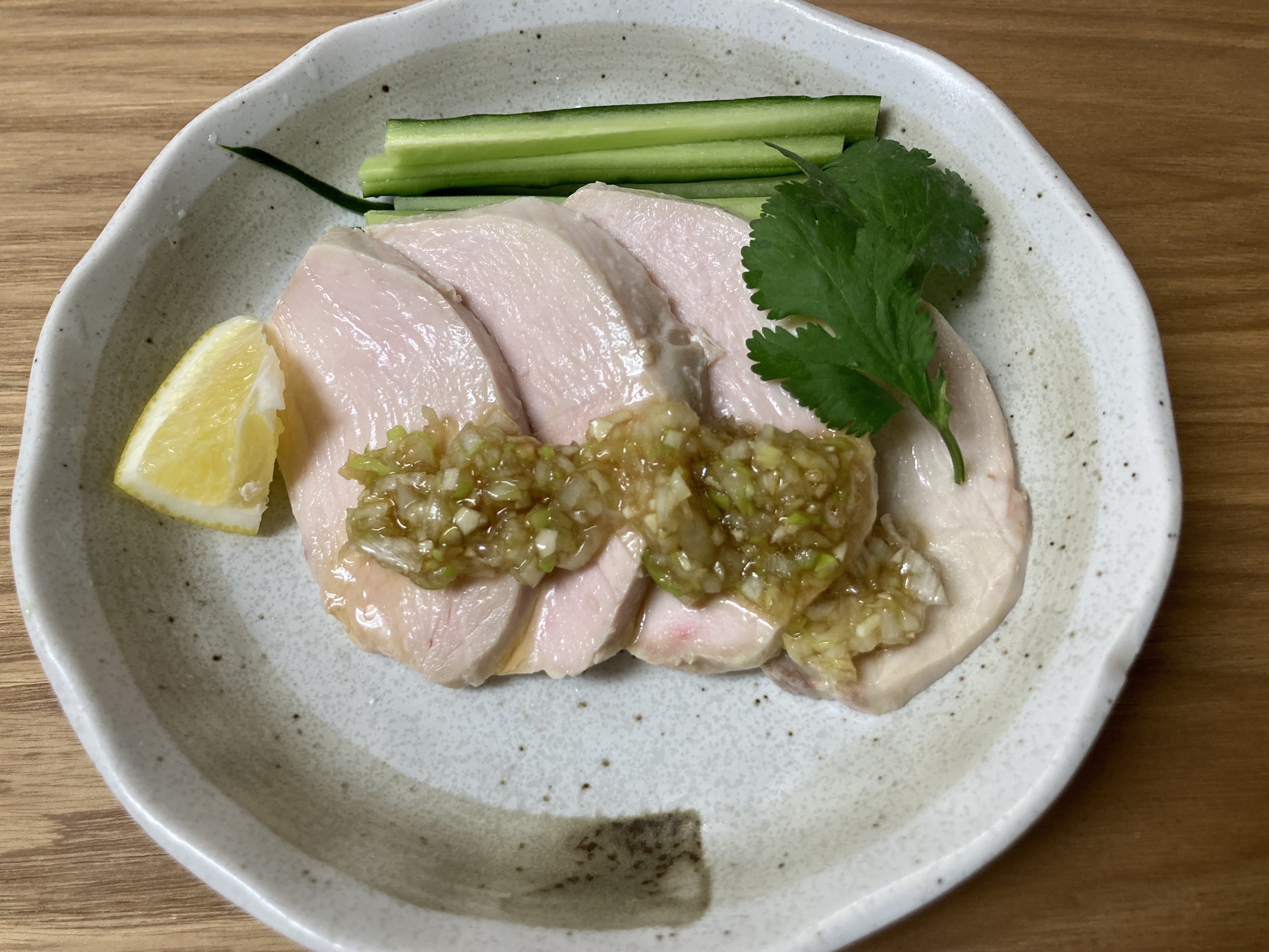 しっとり柔らか!鶏胸肉の茹で鶏ネギ塩ダレ。