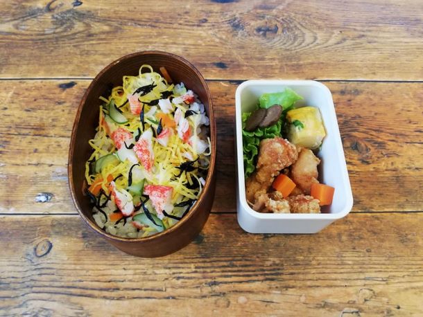 お弁当のコツ 詰め方を変えて彩る、3種類のちらし寿司弁当づくりとなりのカインズさん。