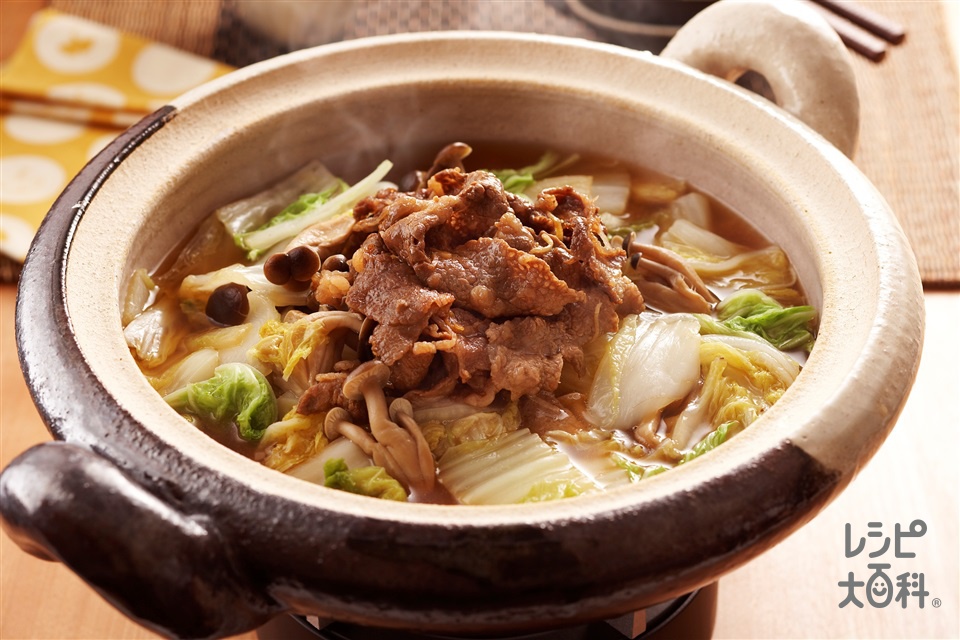 白菜と豚バラのすき煮鍋のレシピ・作り方 簡単&時短- レタスクラブ。