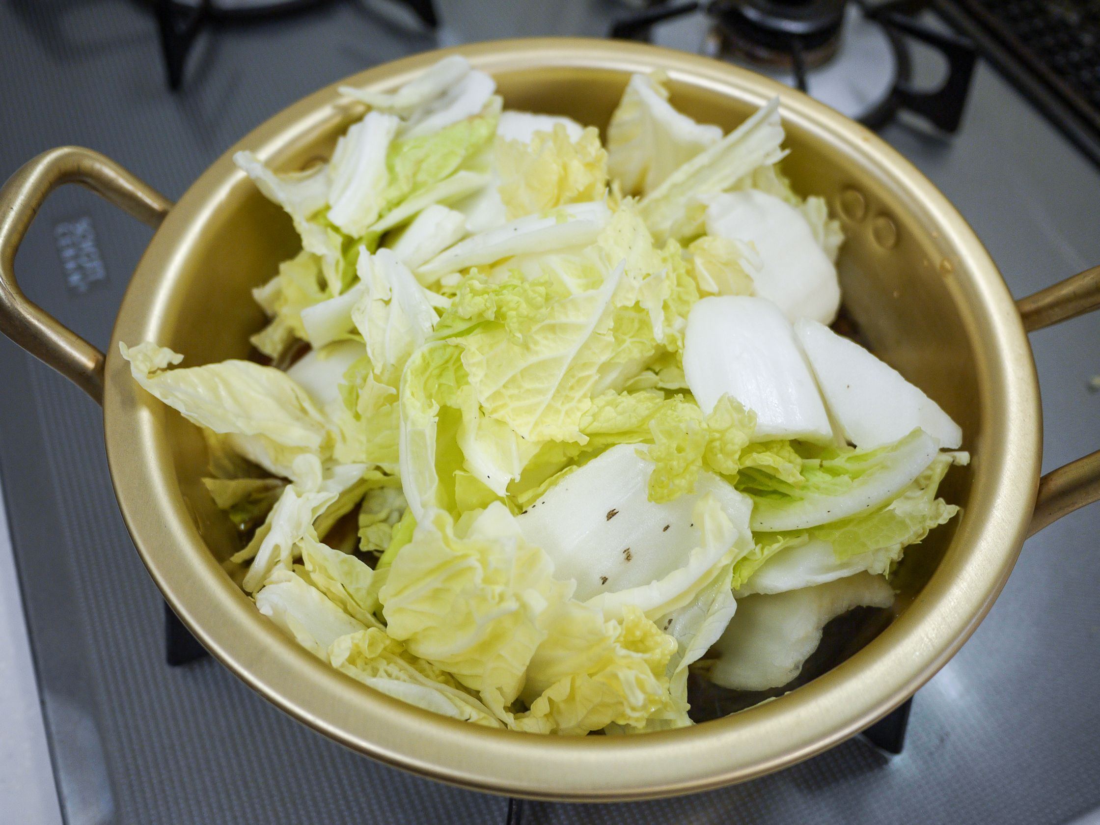レシピ・旨味の染み込んだ白菜が絶品、旬の白菜とホルモンのチゲ: 韓国人が伝授する本場の韓国家庭料理レシピ・韓国料理大図鑑。