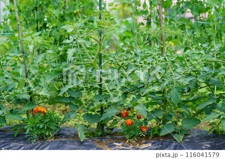 ミニトマトのコンパニオンプランツとしてのマリーゴールドの写真素材116041635- PIXTA。