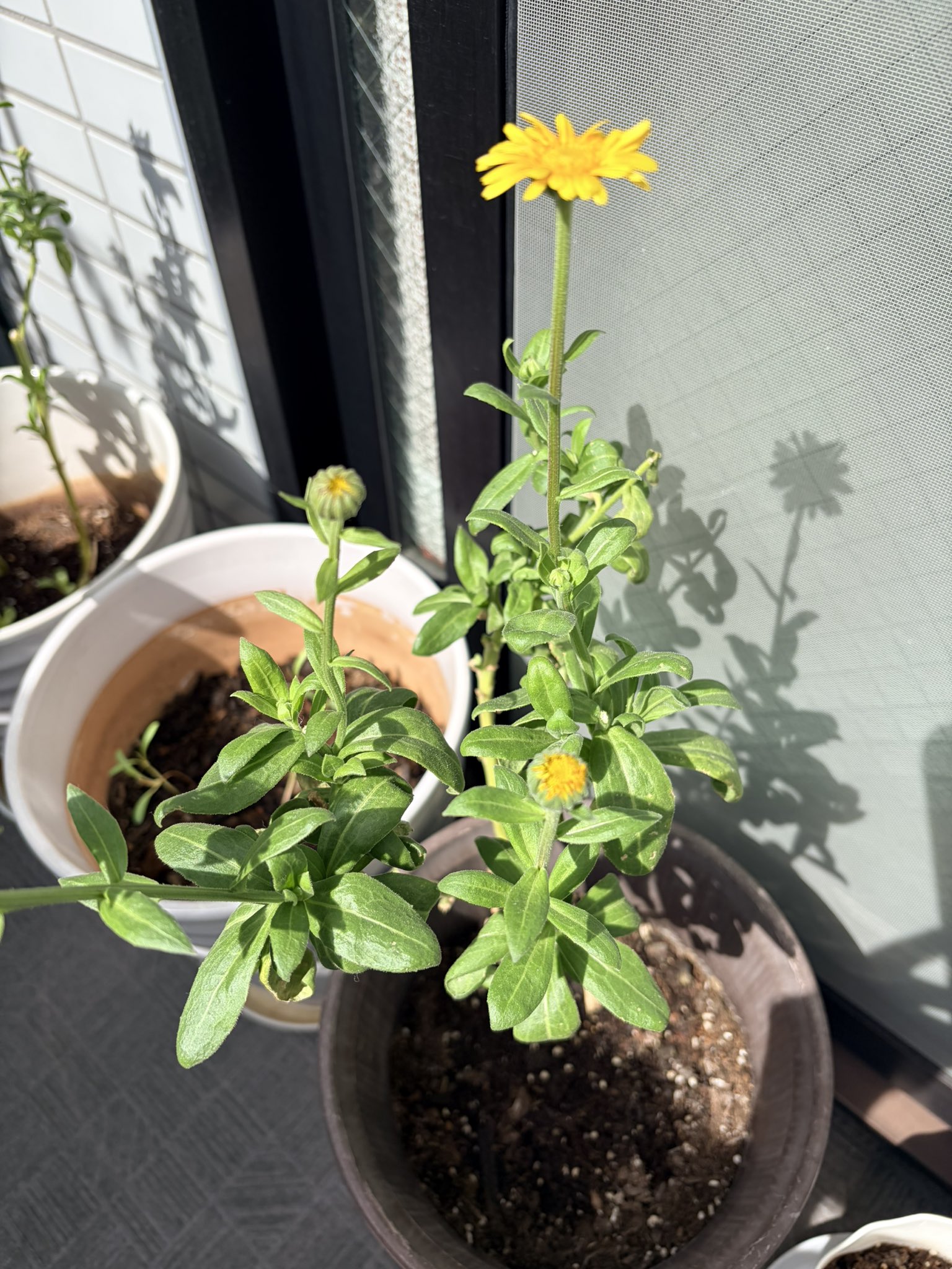 おいちゃん on X: "酷暑に勝ったマリーゴールドと食後の種を植えて発芽したトマトは今のとこ元気! https:t.co Qb8LY0nllB"X。