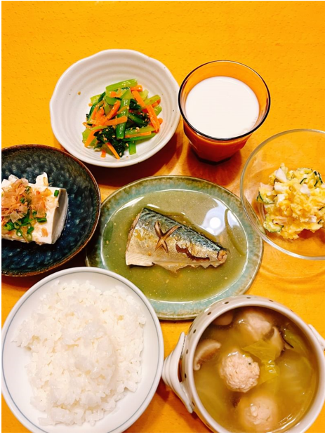 鯖みそでまごわやさしい献立。お陽さま料理。
