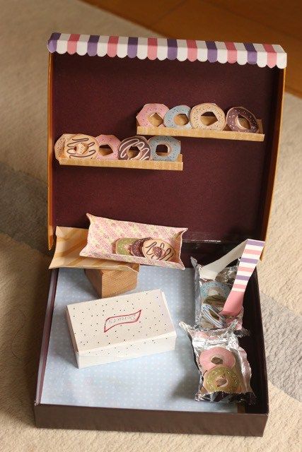 ギフトボックス ピクニックのお菓子を入れる、紙製スイーツ容器の作り方!ドーナツ箱の展開図付。