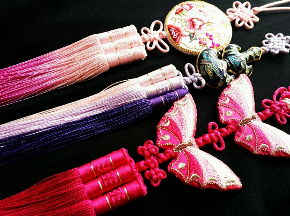 ノリゲによくあしらう三本房のご紹介です。同系色の紐と合わせて作品にしてみませんか。カーテンタッセルなどにも最適です。1本ずつ分離するので、カラーを組み合わせた楽しみ方も可能です。ポジャギ工房koePOJAGI工房koe李京玉이경옥규방공예전통자수。