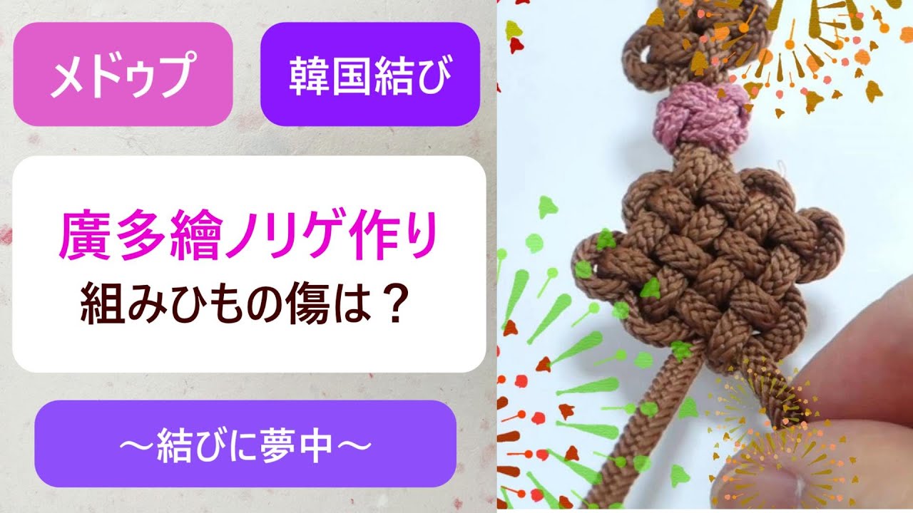 韓国結びメドゥプノリゲ作り①-1廣多繪を組んだら紐に傷が!1本の紐を手指に絡めて作る飾り結び전통매듭韓国伝統工芸노리개。