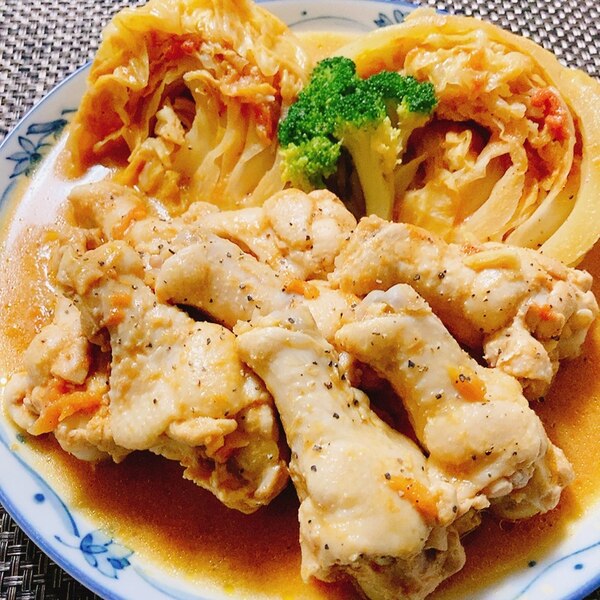 無水調理で旨味凝縮!*手羽元とキャベツのクリーム煮*。