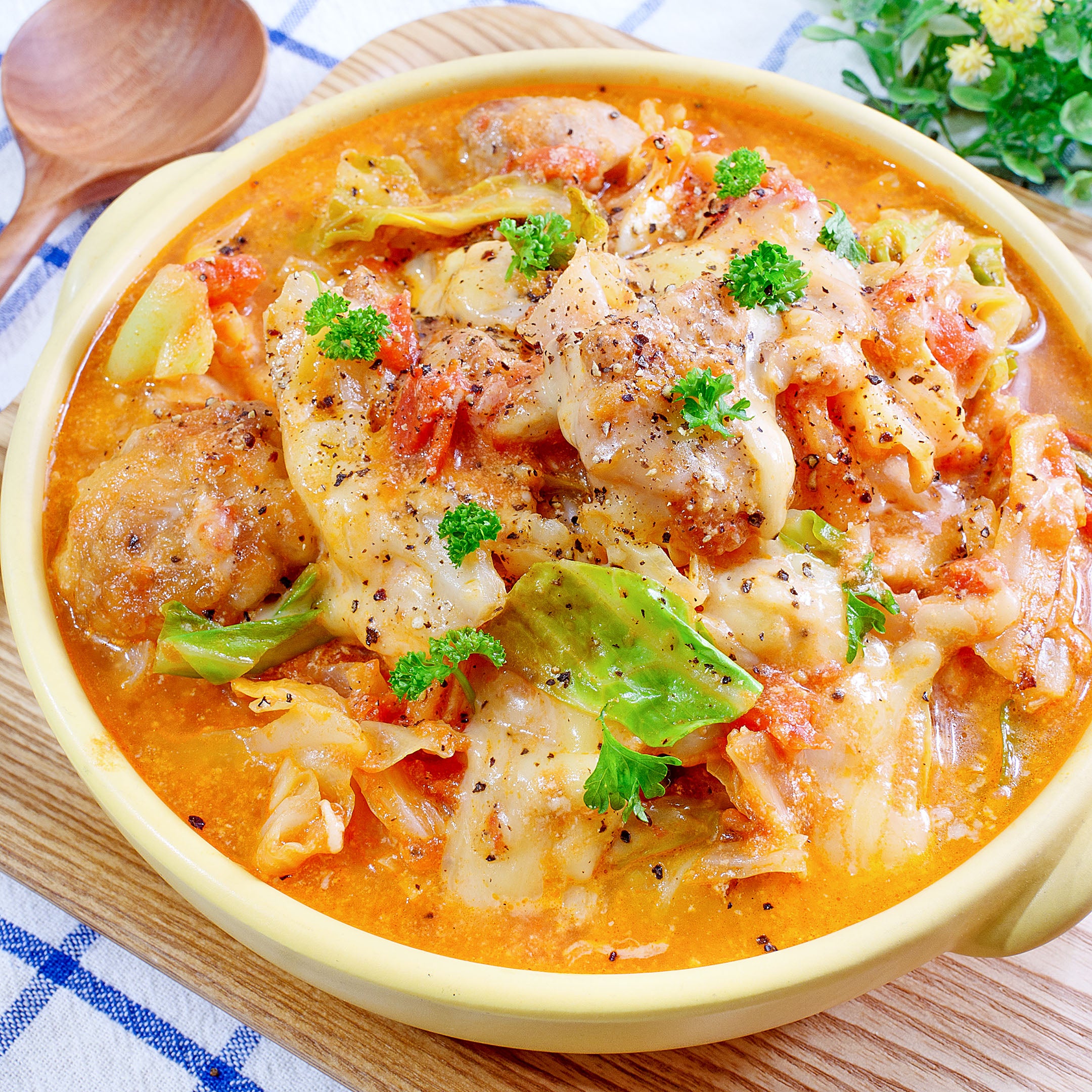鶏肉とキャベツのトマトクリーム煮eフレンズ ぱくぱく献立くん。