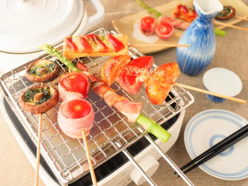 炭火焼きで楽しむ!夏野菜の巻き串レシピ。