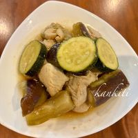 鶏胸肉とナスとズッキーニのポン酢炒め。