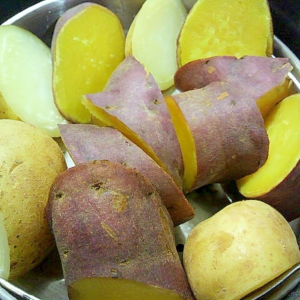 圧力鍋でふかし芋 じゃがいもさつまいも。