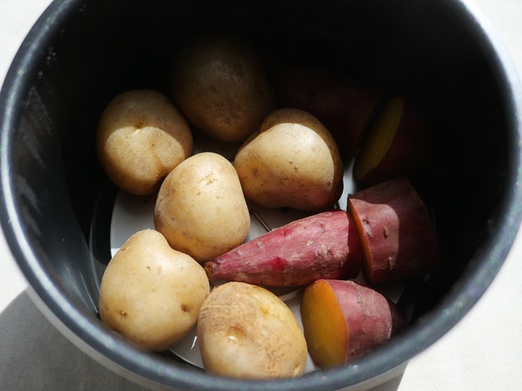 じゃがいも×さつまいも同時蒸し 電気圧力鍋で簡単レシピ時短でほくほく! » 電気圧力鍋でヘルシーごはん。