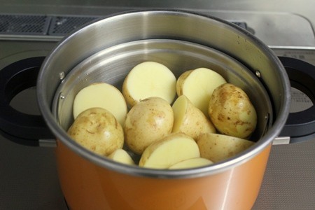 ゆでじゃがいもとゆで卵 二段調理Fissler。