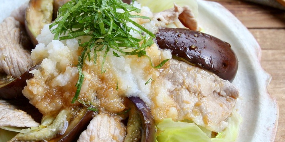 豚肉とナス冷しゃぶ にんにくおろしポン酢。