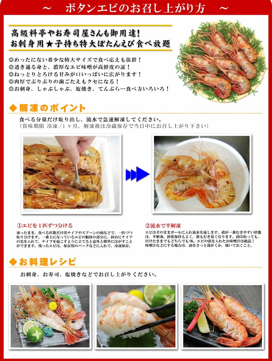 えび食べ方・解凍方法越前かに職人 甲羅組。