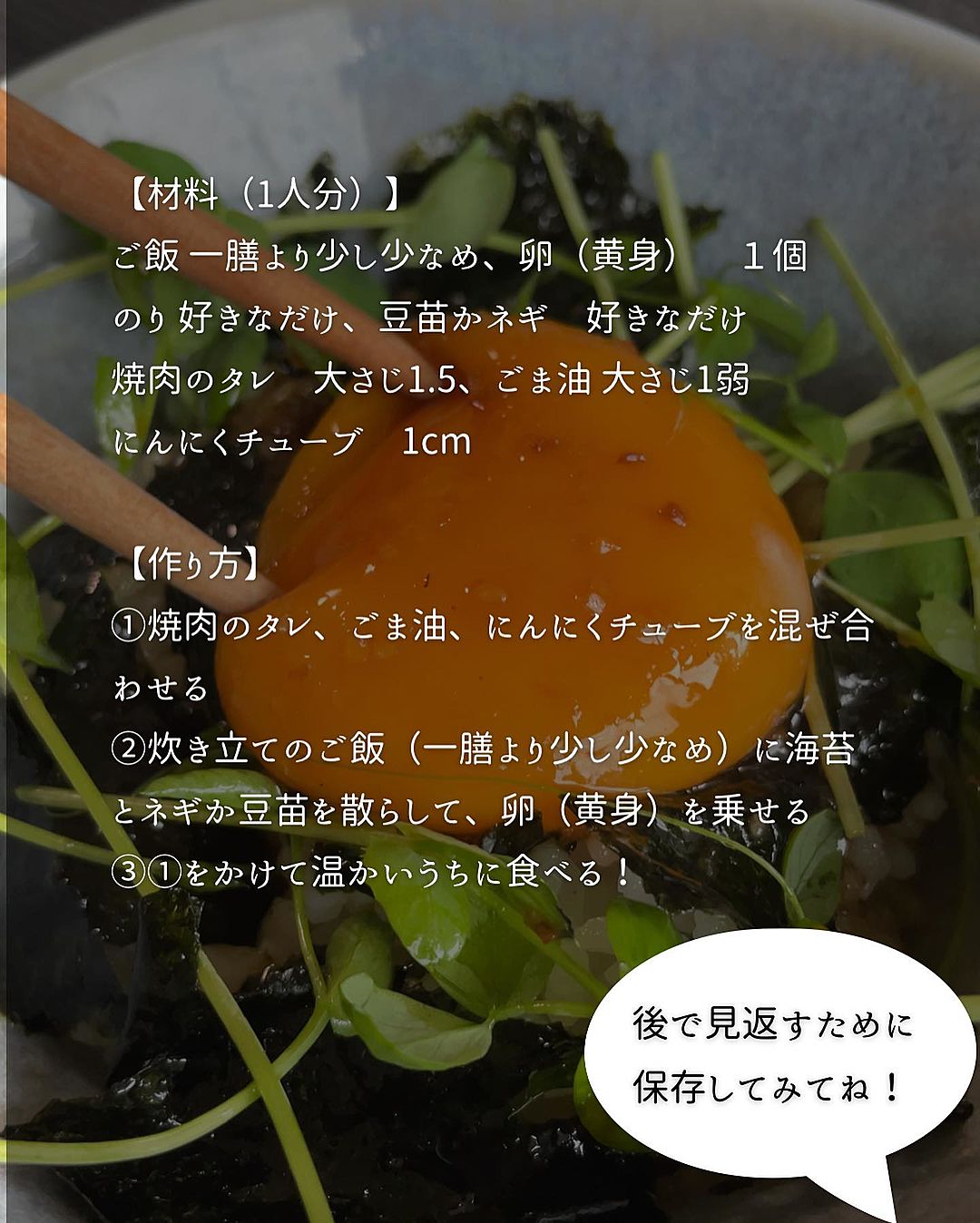 ハマごはん お手軽レシピon X: " 至高のビビンバ風卵かけご飯①ごはん、キムチ、焼肉のタレ、ごま油 、白ごまを混ぜる ②海苔をちぎってごはん の上にのせて卵黄、ラー油をかけて完成! 海苔をち入れれば入れるほどめちゃくちゃ美味いです! 是非お試しください。