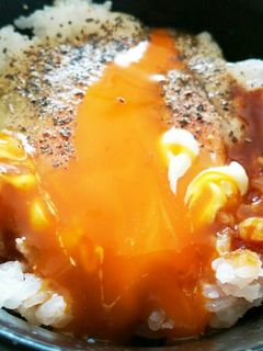 焼き肉のタレ入り、卵かけご飯。