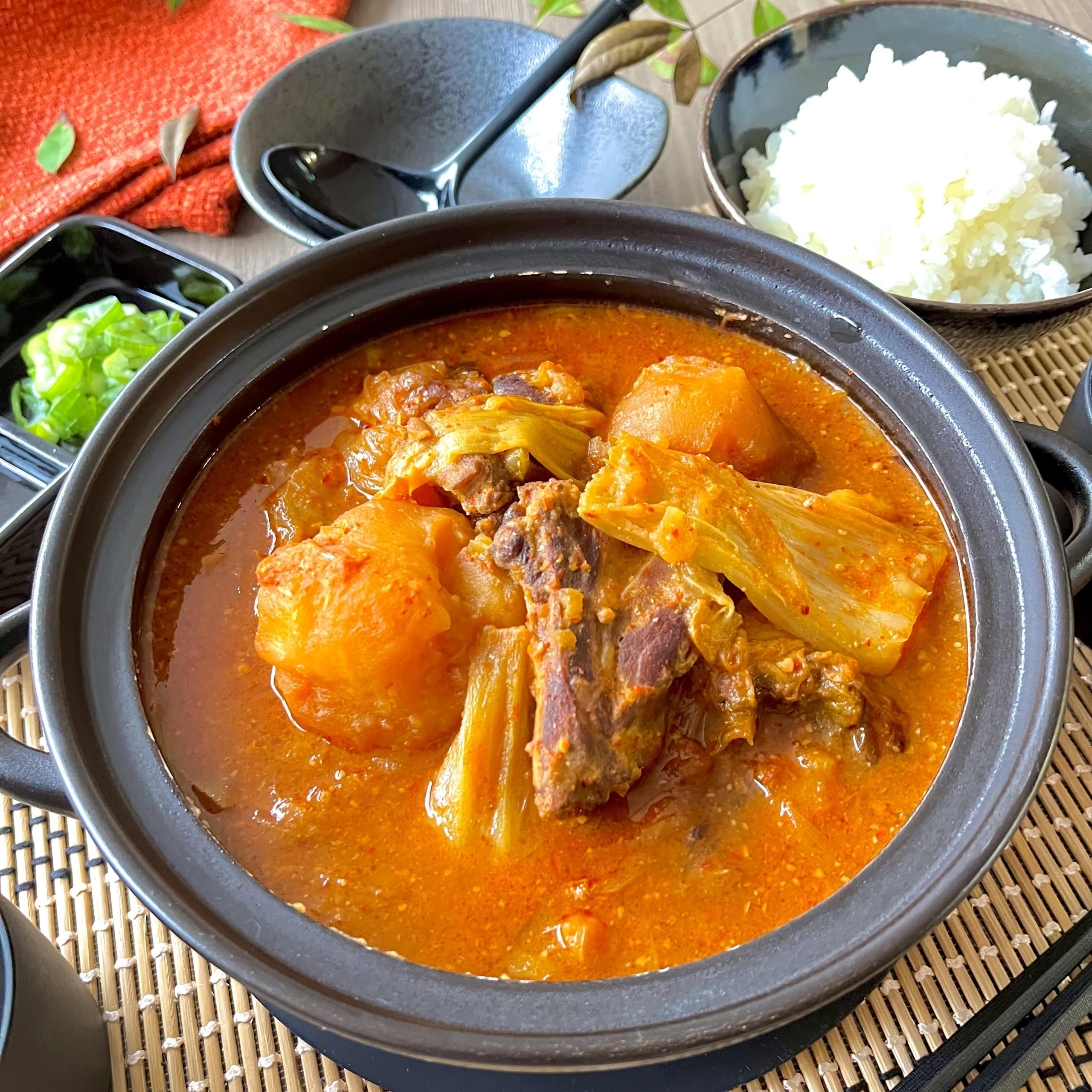 電気圧力なべで、かたまり肉もほろほろに。 豚肩ロースのブロックを長ねぎ、大根、キムチなどの具材と一緒に煮込んだ、ピリ辛のスタミナメニューです。-----------------------------------------ブロック豚とキムチの煮込み□材料 4人分大根 200g長ねぎ 50g。