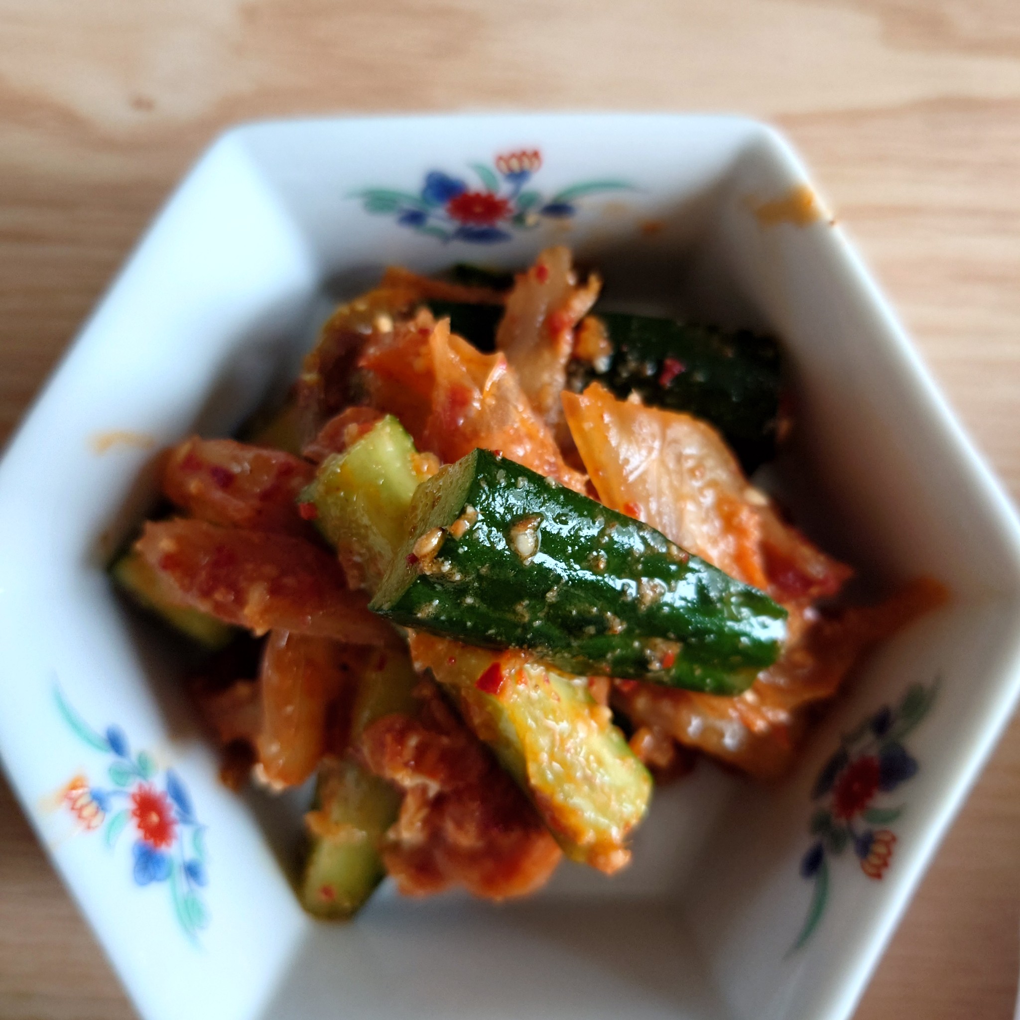 豆板醤を使ったきゅうりのピリ辛即席漬け。