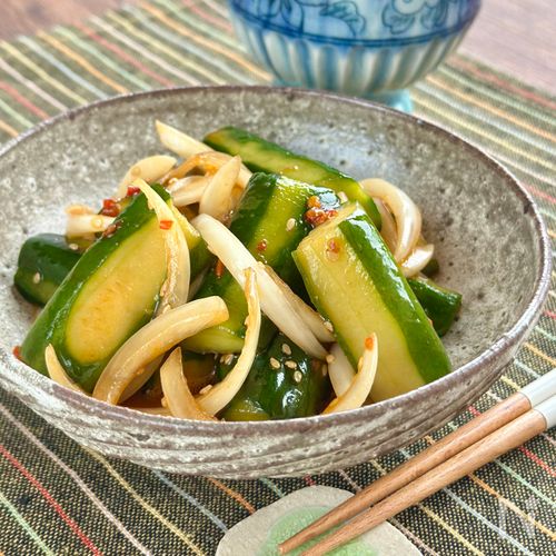 新玉ねぎときゅうりのピリ辛漬け 食べすぎちゃうおいしさ♪。