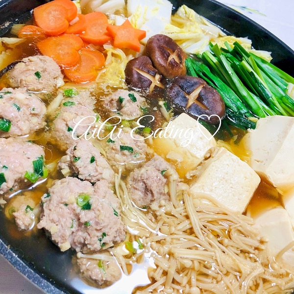♡スープは買わないで♪簡単肉団子醤油ちゃんこ鍋♡。