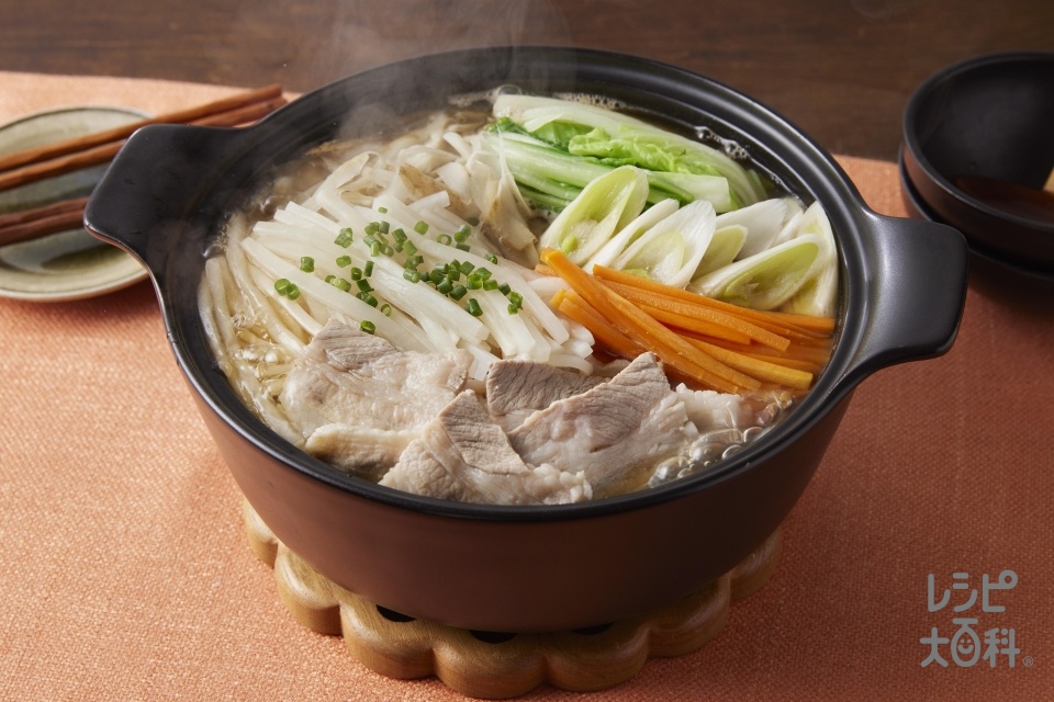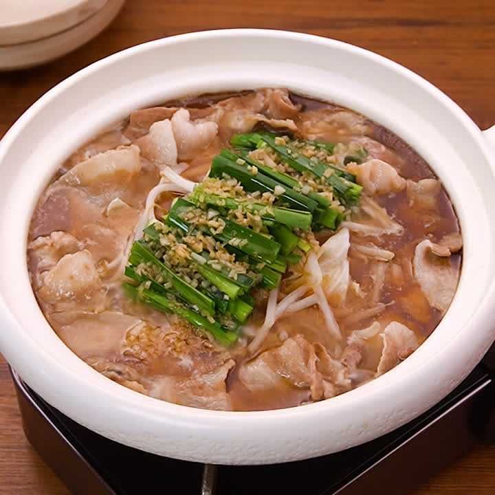 簡単つゆでも極上の味に!豚バラしゃぶしゃぶとネギの醤油鍋 プロの料理人の鍋レシピ。
