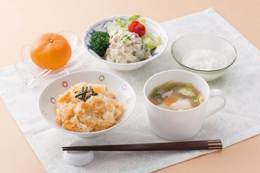 朝食 さけフレークの卵雑炊の献立米穀安定供給確保支援機構:米ネット。
