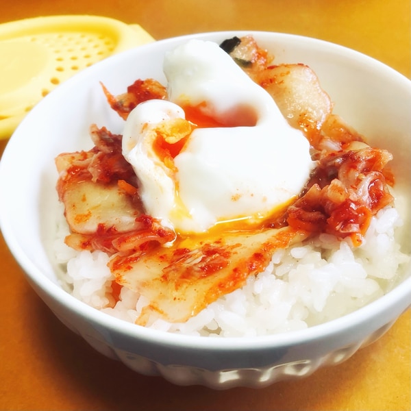 1分 朝ごはん・小腹満たし飯・キムチ・卵かけご飯。