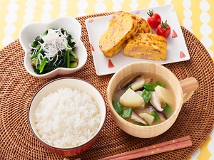 朝食 ハムの卵焼きの献立米穀安定供給確保支援機構:米ネット。